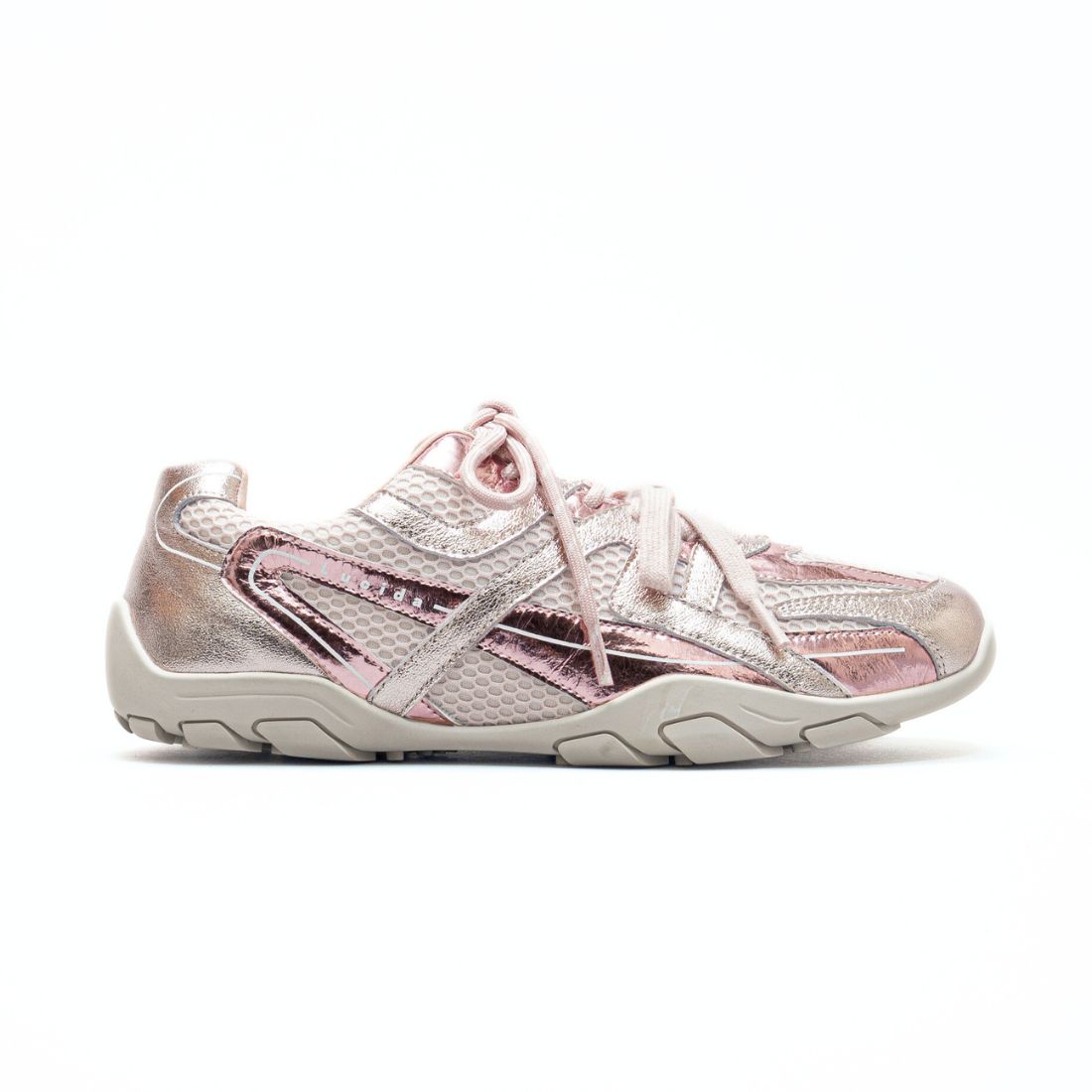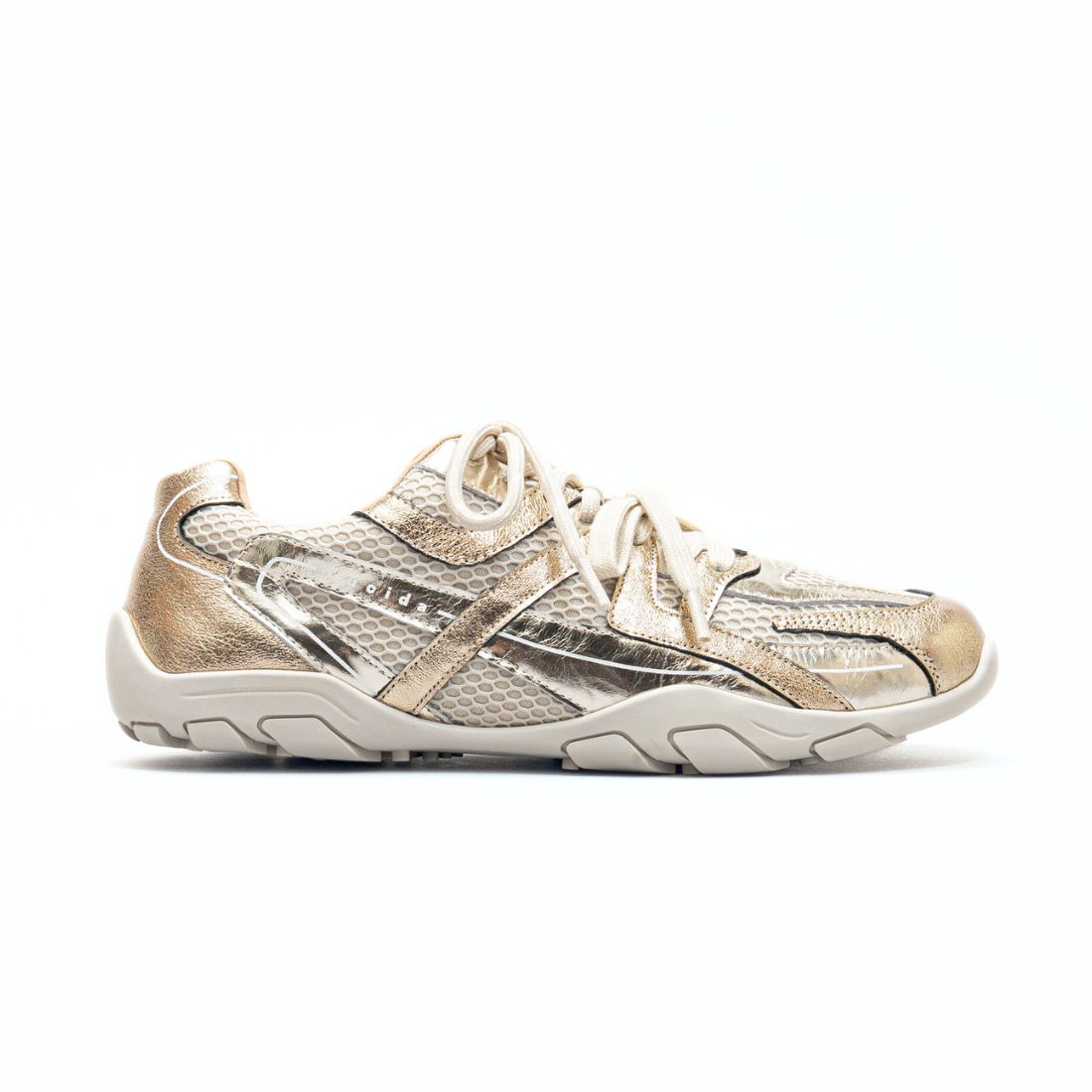 ただのスニーカーじゃない。コーデに都会的なムードを宿すキーアイテム。繊細に煌めくメタリックが、足元を華やかに彩りながら大人の遊び心を添えます。程よくボリュームを抑えたローヒール設計で、カジュアルにもきれいめにもフィット。いつものスタイルにプラスするだけで、季節感と洗練を一度に手に入れられます。3種類のシューレースでスタイリングをお楽しみ頂けます。