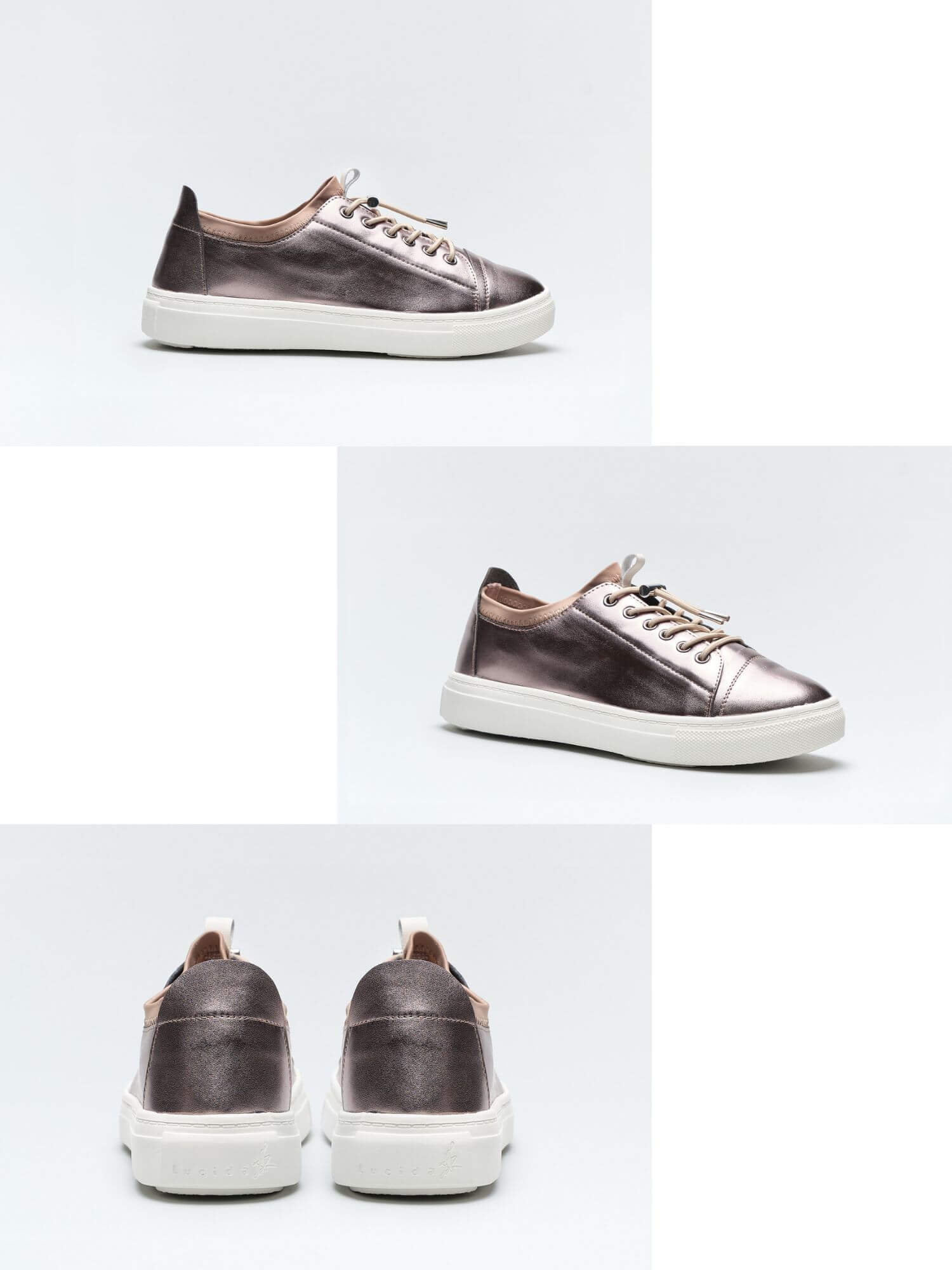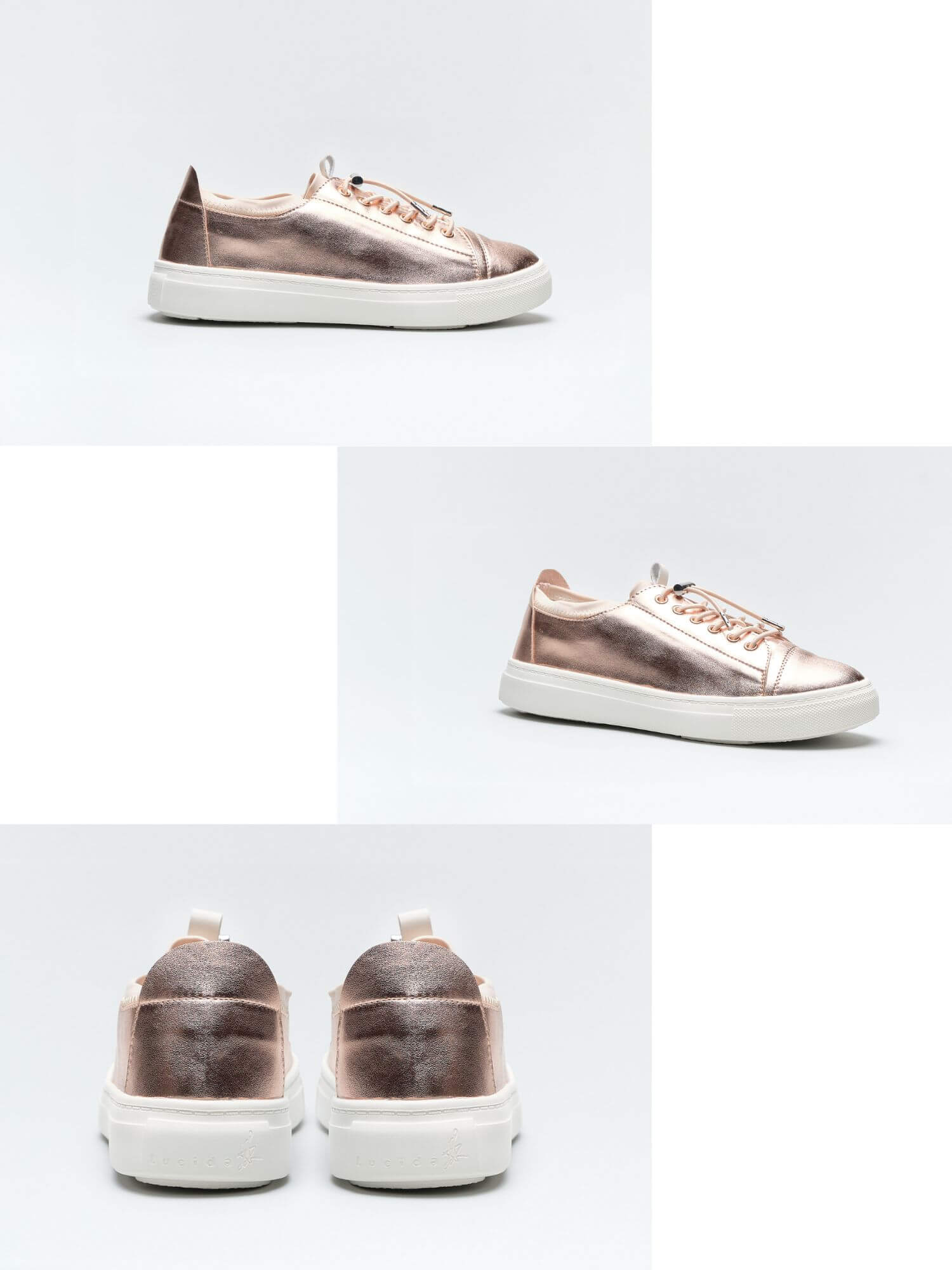 ピンクゴールドカラーは、シンプルさの中に上品さをプラスした大人のスニーカー。